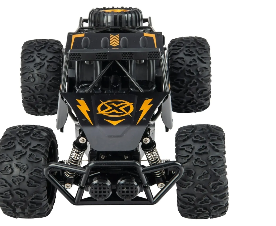 With a sleek black and gold metal alloy body, the 1:12 Turbo Xtreme Metal Radio Control Buggy is designed for style and performance! Add all-terrain thrills to your RC collection, with high-grip tyres and shock-absorbent suspension for non-stop action.Crafted from durable alloy metal, this stylish rechargeable RC buggy is built to last, with a full-function remote control, high speeds, and up to 75 metres range for long-lasting driving fun.