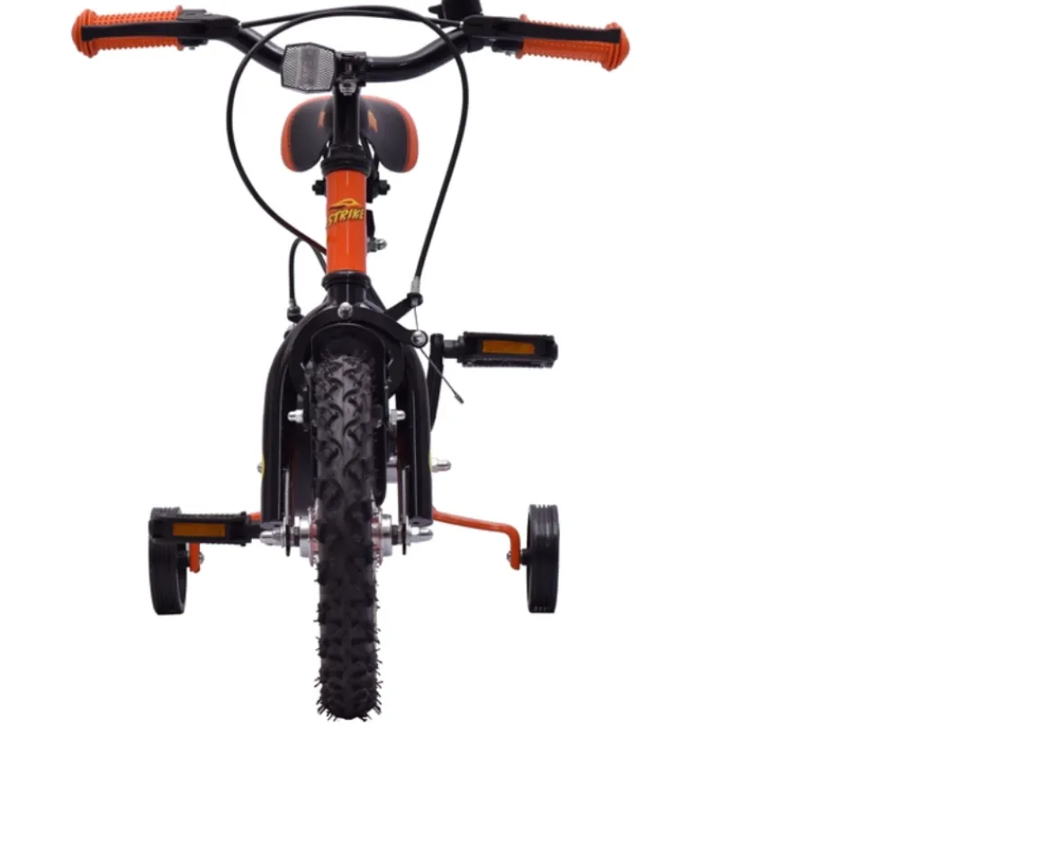Support your child as they learn to cycle with the 12-Inch Strike Bike. The fun colour profile and removable stabilisers make this a great first bike for kids.Built for SafetyChildren will have hours of fun learning to cycle on the 12-Inch Strike bike. This kids’ bike has a strong steel frame and puncture- proof tyres. A fully enclosed chain guard keeps moving parts safely covered while cycling.Children’s Bicycle with StabilisersThe 12 Inch Strike Bike features removable stabilisers, to build your child’s confidence and balance while they cycle. As kids improve their balance and coordination, the stabilisers on this kids’ bike can be removed for independent cycling.