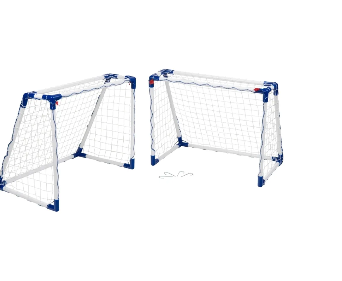 - Contents: 2 mini football goals, ground pegs.