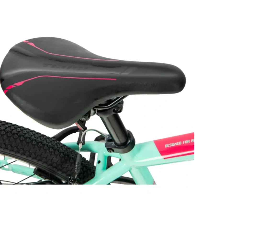 The Team FTB mountain bike is built for exploring. These sleek kids’ mountain bikes feature front suspension and 6- speed gears that put you in control.An MTB Bicycle that’s Made to PerformDesigned for performance, the Team FTB mountain bikes have an 11″ steel frame for strength and durability. The twist grip shifter on this mountain bike is simple to use, working with the rear derailleur to bring you easy transitions through 6 speed gears.Cycle SafelyThe Team FTB mountain bikes come equipped with a bell and reflectors for safety. Plus, the alloy V-brakes on this mountain bike are perfect for stopping effectively!