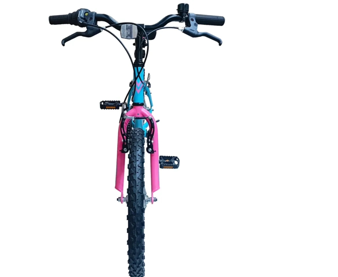 The 20 Inch Verve Zenith GX20 Bike impresses with a lightweight steel frame in pink and blue, for a fun finish that pops like bubble-gum! With 6-speed Shimano gears and easy-to-use twist grips, this eye- catching 20 inch bike has aluminium rims for added stability.Front and rear steel V-brakes offer security in all weather conditions, while front and rear reflectors ensure the Zenith GX20 stays visible in the dark, with a kickstand for convenience and control.