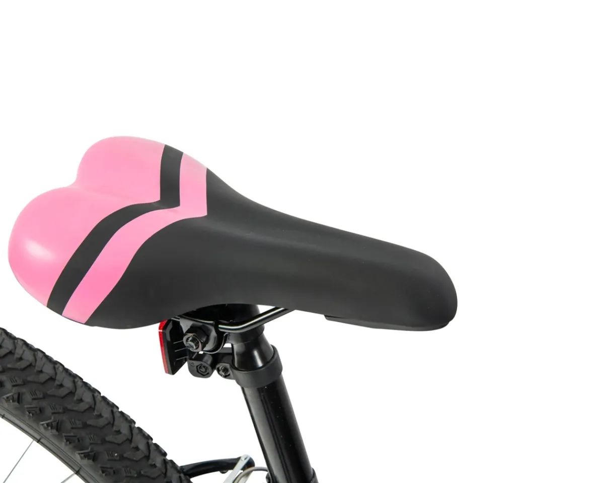 Kick start your adventures with the 24 Inch Verve Ultra Mountain Bike in Pink and Black! This sleek mountain bike boasts an 18-speed full Shimano gear set with a simple twist grip shifter, putting you in control on and off the trail. With zoom front suspension and 24 inch tyres, the Verve Ultra is the ultimate adventure companion.This 24 inch mountain bike features a sturdy steel frame for strength and longevity, equipped with front and rear alloy V-brakes for quick and secure stops. With a kickstand, bell, and front and rear reflectors for enhanced visibility, you’re ready to explore.