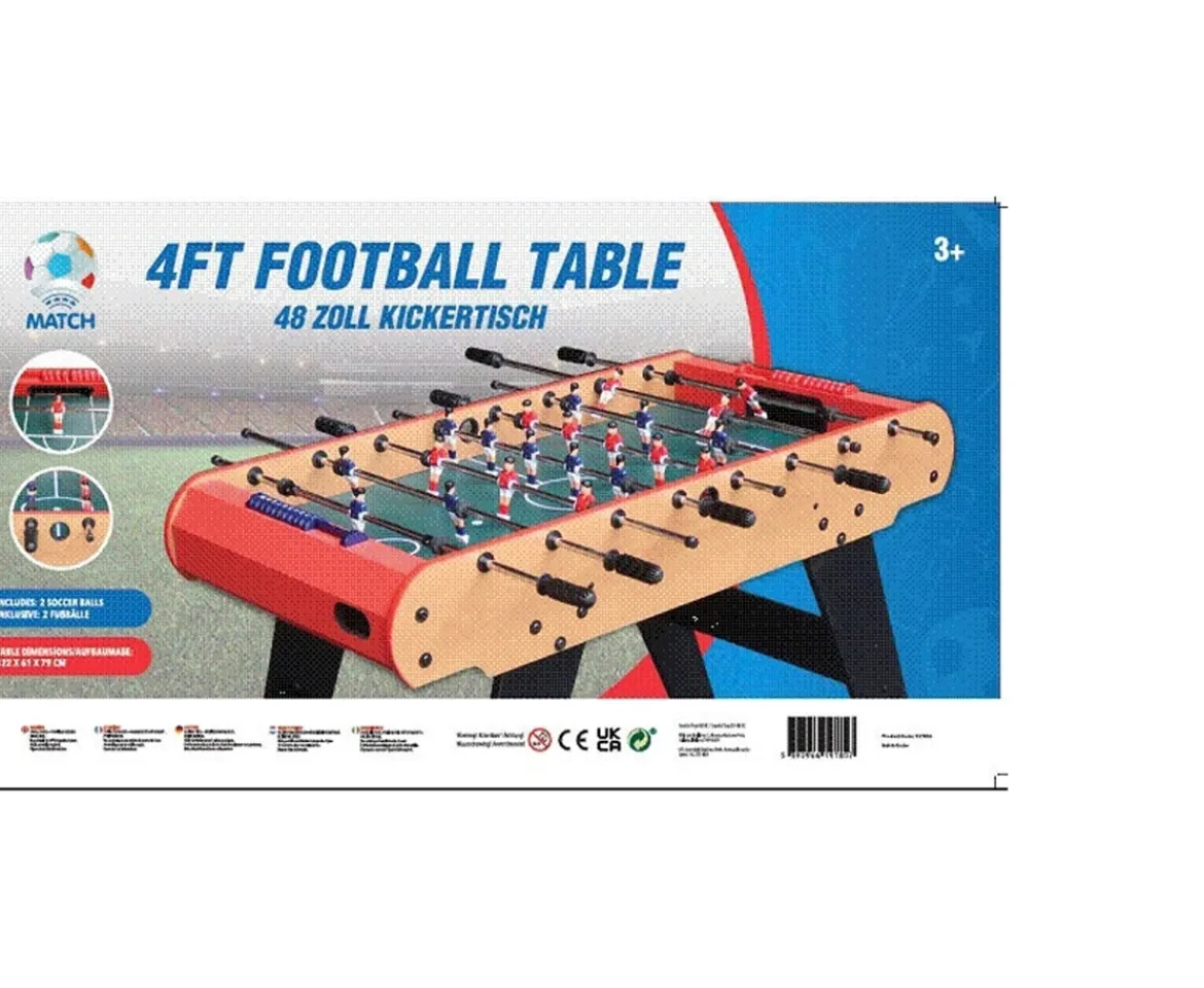 The 4ft Football Table is a must have for any football fan. With a classic design and strong wooden frame, this games table makes a stylish addition to any games room. Choose the red team or the blue team and track your goals with the sliding scoreboards. The 4ft Football Table has 8 rows of players with easy-grasp handles for fast foosball action. 2 mini footballs are included, ready for your next table football tournament. The 4ft Football Table is sized for both adults and kids. Challenge your friends to see who can become the table football champion!