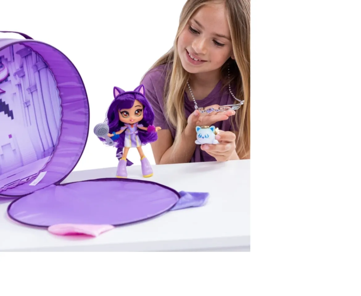 - 1 x Fabric Case1 x Fashion Doll1 x Outfit for doll1 x headband for doll1 x pair of shoes for doll1 x tail for doll1 x brush for doll2 x cat faced diamond1 x necklace1 x sash for doll1 x cat figure1 x vinyl sticker