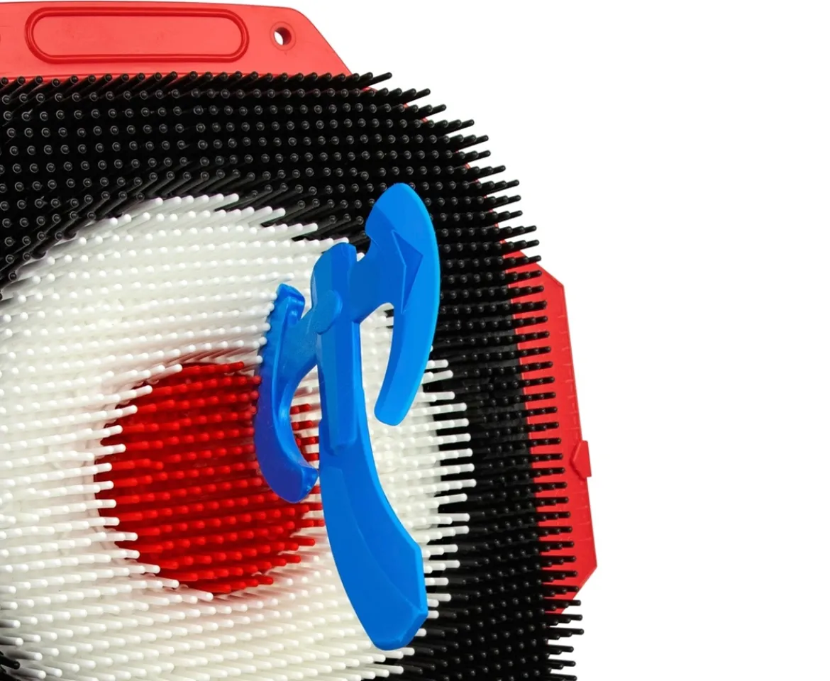 Get your adrenaline pumping with Axetreme, work on your axe throwing skills to become an expert axe thrower. Aim, throw, strike your way to the top of the leader board. This game is sure to axe-ceed your expectations!Including soft flexible axes for safe axe throwing, this popular activity is a hit with adults and now children can get involved too! Give it your best shot and see how you score, aim for the centre to go straight to the top of the leader board. The unique target is made from special flexible material, so your axe simply slots into the target, mimicking real life axe throwing.Make the battle of the axes more competitive with the dice adding a fun challenging twist. Throw the dice to see what trial it sets you and complete it whilst you throw your axe, but make sure it doesn’t throw you off target.Practise alone to build up your skills or play competitively with peers. A staple interactive game for the whole family to get involved with. Bring speed and skill for axe-cellent results!