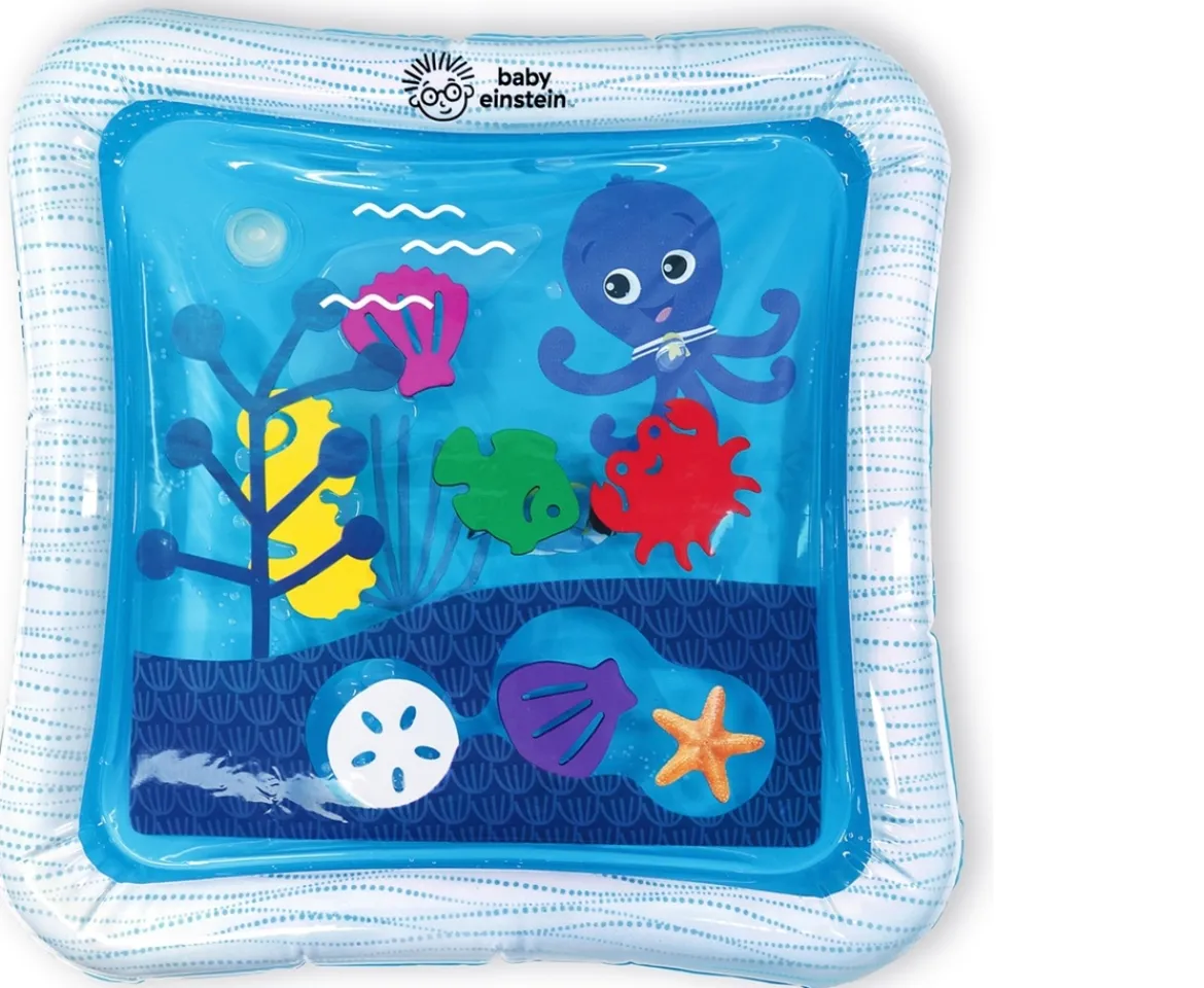 Under the sea exploration is at your baby’s fingertips with Opus’s Ocean of Discovery Tummy Time Water Mat, featuring Baby Einstein’s Opus the Octopus. Simply fill the centre of the play mat with water and blow up the outer rim with air. During seated play and tummy time, baby can make the 6 floating sea creatures and shapes move under the surface.Perfect for naturally curious kids, this hands-on activity introduces cause and effect as they touch the mat and watch the underwater creatures swim. Opus’s Ocean of Discovery Tummy Time Water Mat helps to engage baby as they develop their gross motor skills. Cleanup is easy —just drain the water and air, wipe down the mat and fold up for storage or travel. Explore the wonder of water and sensory play wherever you go.Sensory PlaySensory toys are hugely beneficial to your baby’s development. This beautiful sensory toy has soft textures and fun patterns to stimulate your baby’s senses.