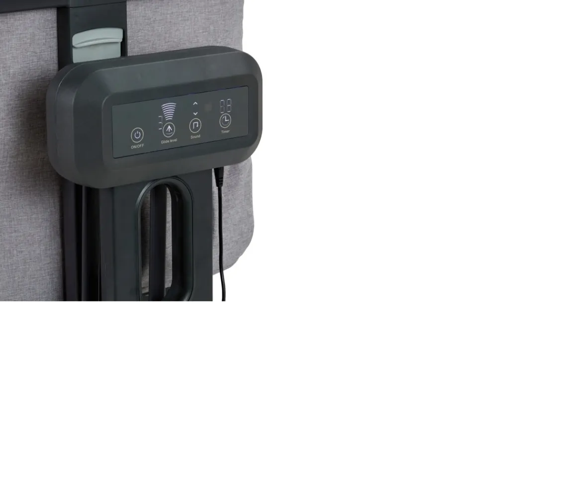 The Co-Glide by Baby Elegance is our most advanced sleeping crib yet. Designed primarily as a beautiful place for your little one to sleep for the first 6 months, it boasts a huge range of features. It helps improve sleeping patterns, makes feeding and soothing easier during the night and encourages baby-parent bonding. The Co-Glide is a fantastic 3 in 1 solution, use as a side-sleeping crib, standalone crib or as a travel crib using the travel bag included.Bedside Co-SleepingThe Co-Glide crib allows you to sleep next to your baby without being in the same bed. Your baby can safely sleep next to you in this bedside co-sleeper, within arms reach. This allows you to respond quickly, whether it’s feeding, changing or they just need some cuddles.All-natural motionOur Co-Glide can also help new-borns improve their sleeping pattern due to the built-in automatic glide function. Please note that you must only use the USB plug provided. The crib has 3 levels of glide designed to replicate the movement of a gentle glide as if they are in your arms. This can easily be set on a timer built into the crib or adjusted from the comfort of your bed with the handy remote control. Please ensure adequate space around the crib before using the in-glide function. If there’s not enough space, the glide function will automatically cut out.Soothing musicAs if that wasn’t enough, the crib also has a 3 built in tracks including white noise to promote a calm sleeping environment. Choose these tracks or simply connect your phone or tablet to the Co-Glide visa Bluetooth and play a song of your choice.Multi heightThe crib can be tilted by five height adjustable levels to help baby’s digestion, improve breathing, and reduce reflux. With two large mesh windows and the breathable mattresses to help airflow through the crib.