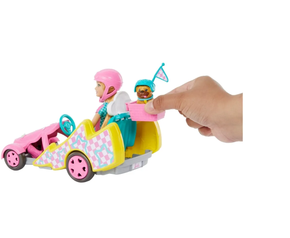 - Contents: 1 x Barbie Doll, 1 X Go-Kart, 1 X Dog, 6 X Accessories