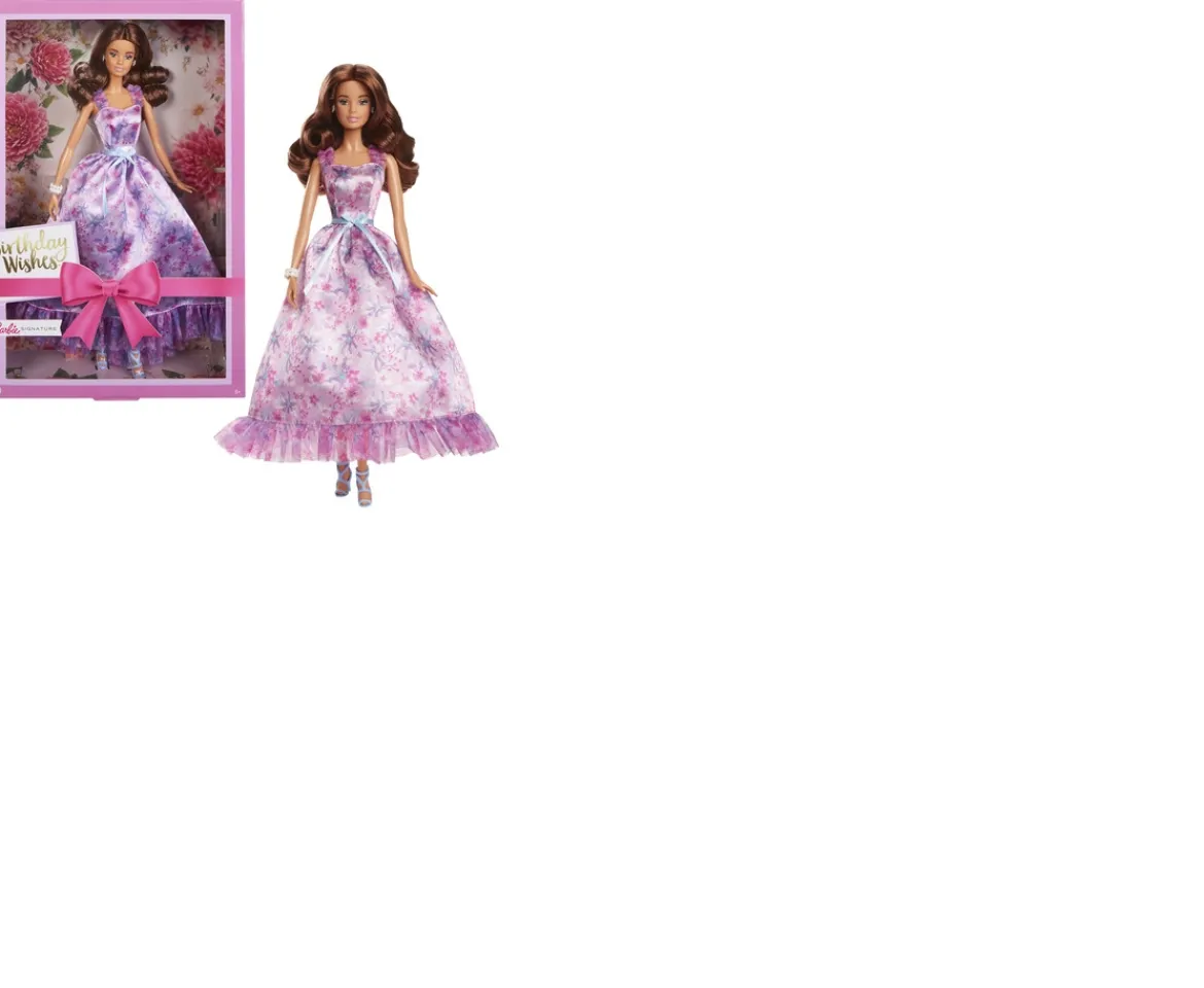 - Barbie Signature Birthday Wishes Collectible Doll in Lilac Dress with Giftable Packaging includes 1 Barbie doll with outfit.