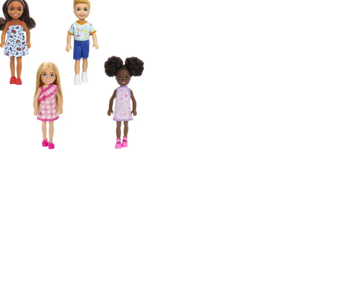 Chelsea™ doll and her friends inspire young minds to explore and create! The adorable small dolls wear bright colors and come with removable fashion pieces for dress-up fun. Added diversity and more variety in looks and hairstyles provide infinitely more ways to spark imaginations. Kids can collect them all to expand the play possibilities. Each sold separately, subject to availability. Dolls cannot stand alone. Colors and decorations may vary.
