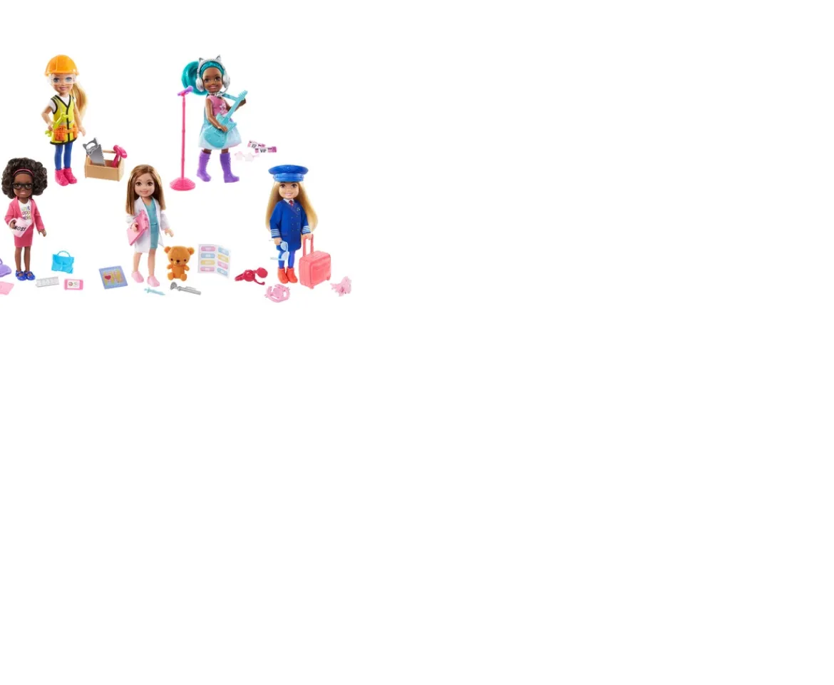 - Barbie Chelsea Can Be… Doll & Accessories Sets, Career-Themed Small Dolls Includes 1 doll wearing removable outfit and shoes, plus accessories.