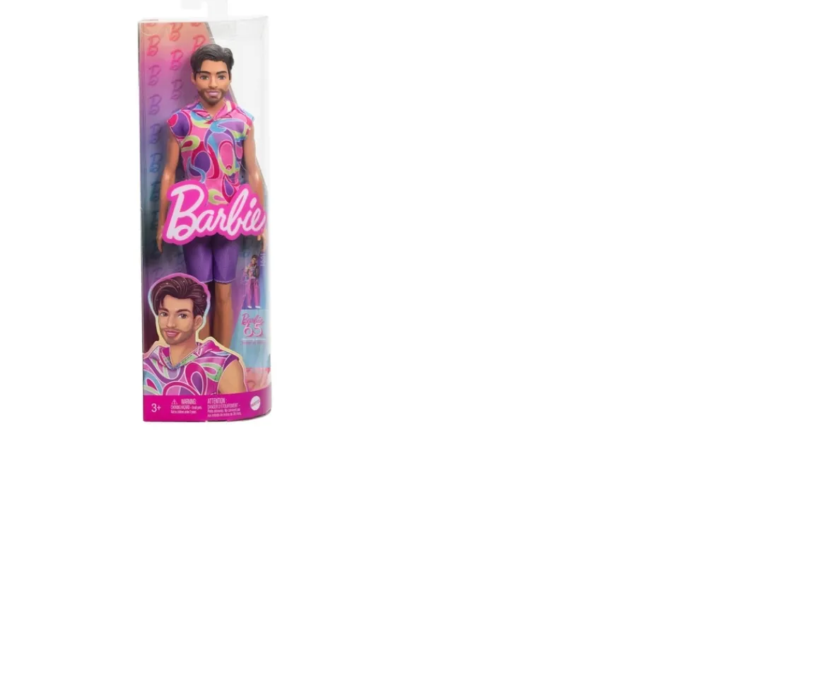 - Barbie Fashionistas Ken Doll #227, Brunette Fashion Doll with Totally Hair-Inspired Look, 65th Anniversary Includes 1 doll wearing top, pair of shorts and shoes. Doll cannot stand alone. Colors and decorations may vary.