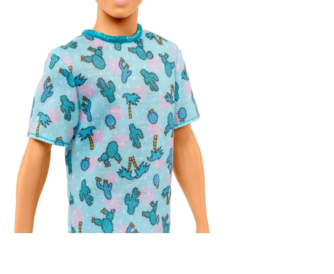 Ken Fashionistas dolls keep it cool with trendy looks tailored to their individual style, making for endless storytelling possibilities. Barbie and Ken Fashionistas celebrate diversity and offer endless possibilities for storytelling and fashion exploration. With this inclusive range of dolls, kids can see how fun it is to express personality through style!This Ken doll wears a super fun tee with a cactus and palm tree pattern that really makes his personality pop! White shorts and cream- coloured high-top sneakers complete his versatile and stylish outfit They’re an ideal gift for fashion-loving kids everywhere. Each sold separately, subject to availability. Dolls cannot stand alone. Colours and decorations may vary.