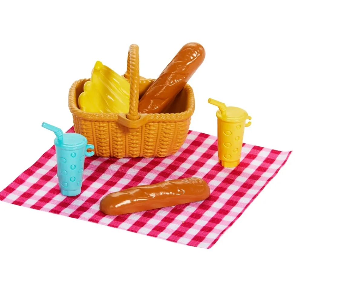 - Contents: x1 Barbie 'Malibu' doll x1 dress, x1 pair of shoes, x1 Chelsea doll, x1 dress, x1 pair of shoes, x1 picnic basket, x1 blanket, x1 banana bunch, x2 baguettes, x2 drinks, x1 sunhat, x1 pair of sunglasses