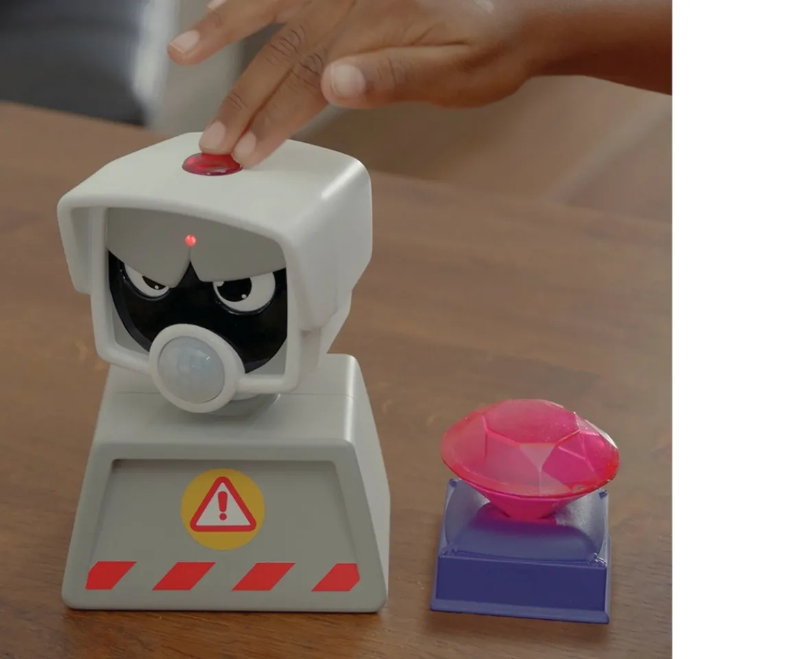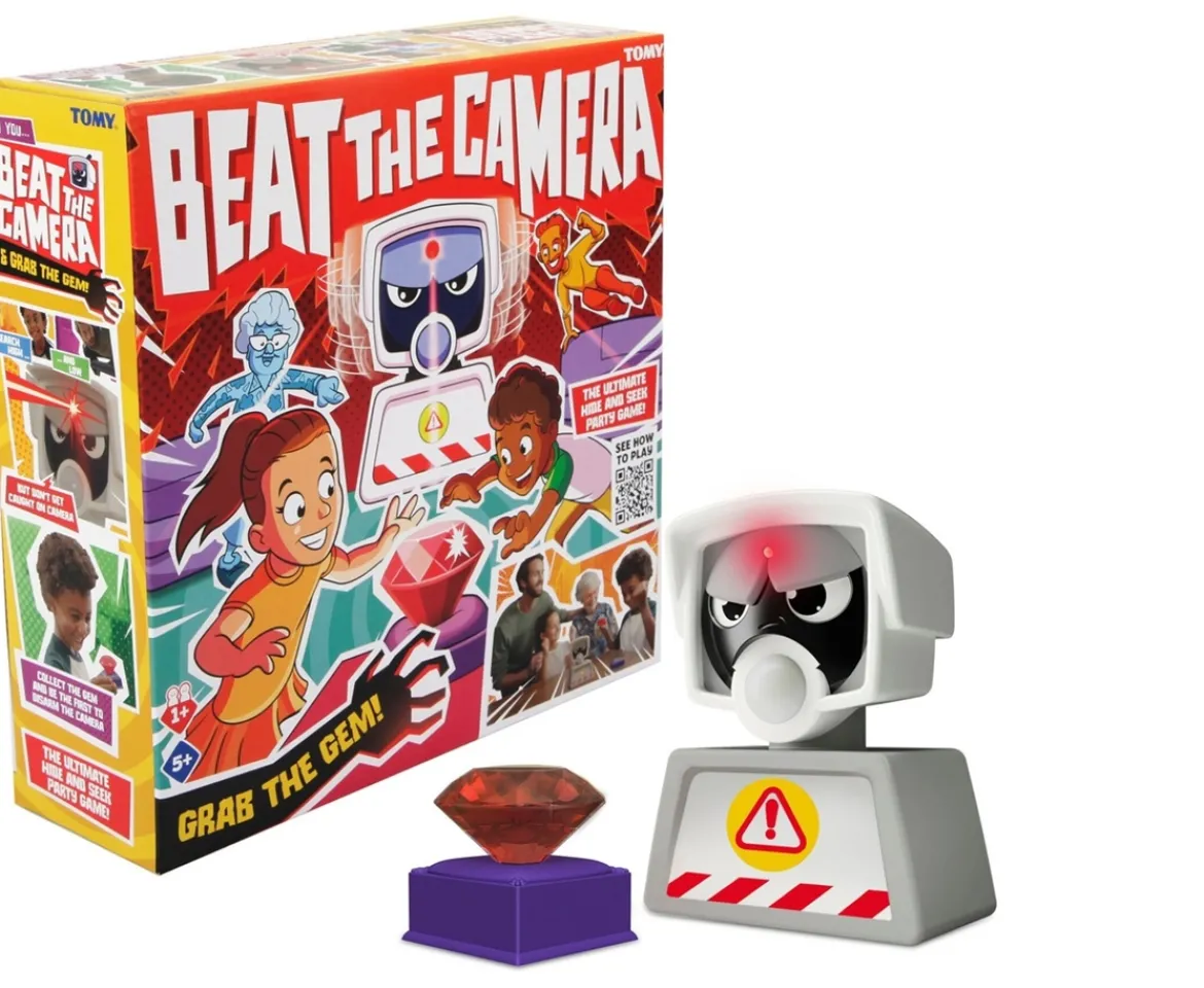 Beat the Camera is a nerve-jangling quest to find a precious gemstone. To get to the gem, you’ll have to beat your friends and beat the camera. Here’s how it goes: for a simple game, place the gemstone on its stand so players can see it, then push the Play button on the camera. Sound effects will start the countdown as players get to their positions before the camera’s beady eyes start to sweep the room, scanning the space from side to side… When the sounds and the camera stop, FREEZE! Don’t move a muscle or the camera’s invisible beam will detect you, the alarm will go off and you’ll be out of the game! Keep playing until one player can grab the gemstone, get back to the camera to stop it – without being spotted – and win! For a longer game, players can head back to their starting places without stopping the camera. You can play solo or with friends and family. Or, for the ultimate hide and seek challenge, ask one player to conceal the gemstone and get all the others to hunt it down without being nabbed by the camera’s roving eye.