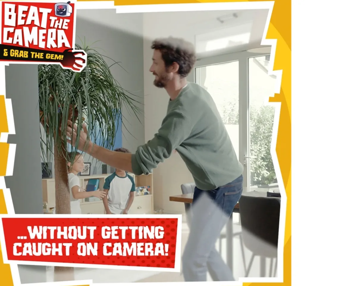 - First home wins the game! Move, freeze. Move, freeze. Collect the gem and be first to disarm the camera.