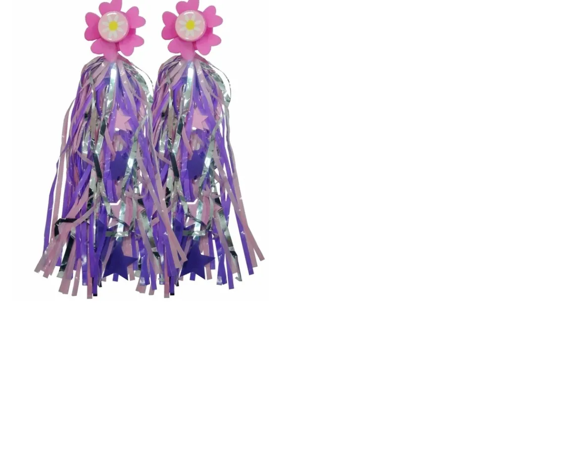 Brighten up your bike with these pretty bicycle streamers in purple, pink and silver. These bicycle streamers have a windmill end flower design. The windmills spin while you’re riding your bike.