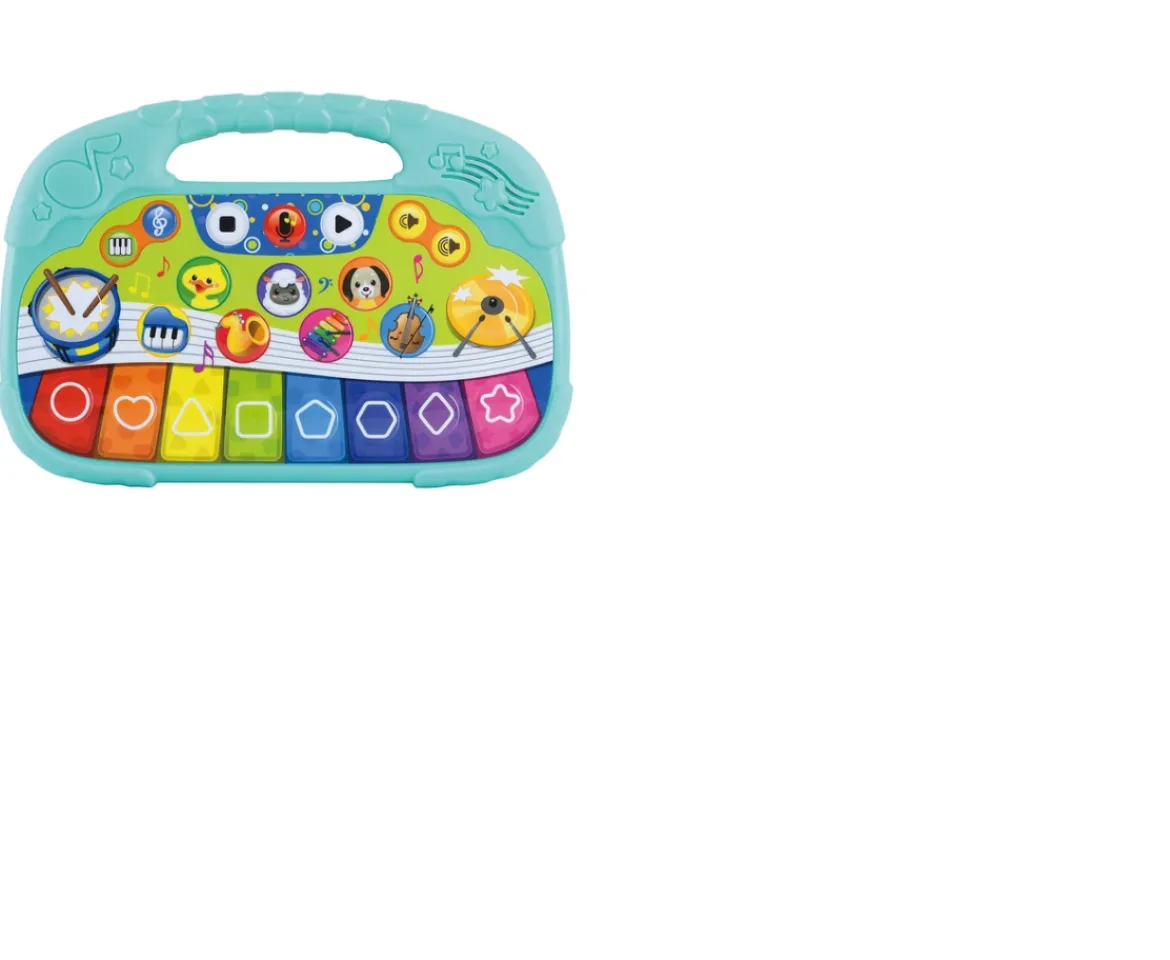 Big Steps Animal Orchestra Keyboard comes with four fun ways to play animal sounds, piano notes, 10 different songs and recording. Experiment with making songs and dance along to the upbeat music. Perfect gift for kids who love music and farm animals.