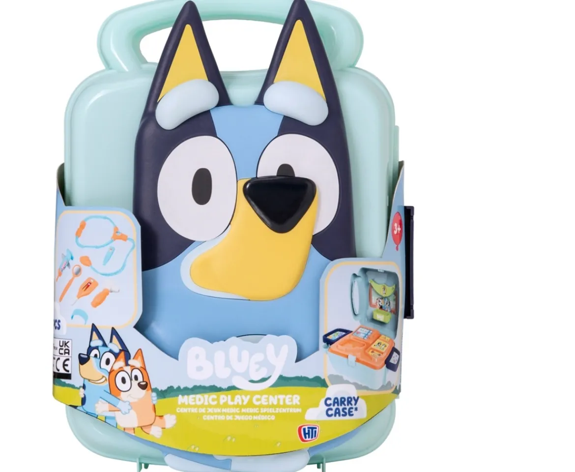 - Contents: 1x Bluey Carry Case, 1x Stethoscope, 1x Syringe, 1x Dental Mirror, 1x Thermometer, 1x Otoscope, 1x Tweezers