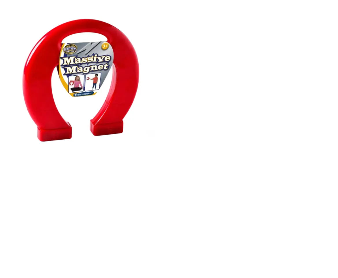 Brainstorm Massive Magnet. Massive Magnet designed for small hands and curious minds. Separate North and South Poles with loads of lifting power. Perfect for magnet exploration in the home or classroom. Magnet measures a massive 19cm x 19cm. Supplied in a durable bright red plastic.Introduce children to the magic of magnetism with this powerful, bright red Massive Magnet. This horseshoe shaped magnet is especially designed for small hands and curious minds. With separate North and South poles it encourages children to learn more about the physical world around them. The Massive Magnet is 19cm x 19cm and has loads of lifting power. Children will love to explore and experiment with magnetism and it is great for use at home or in the classroom.