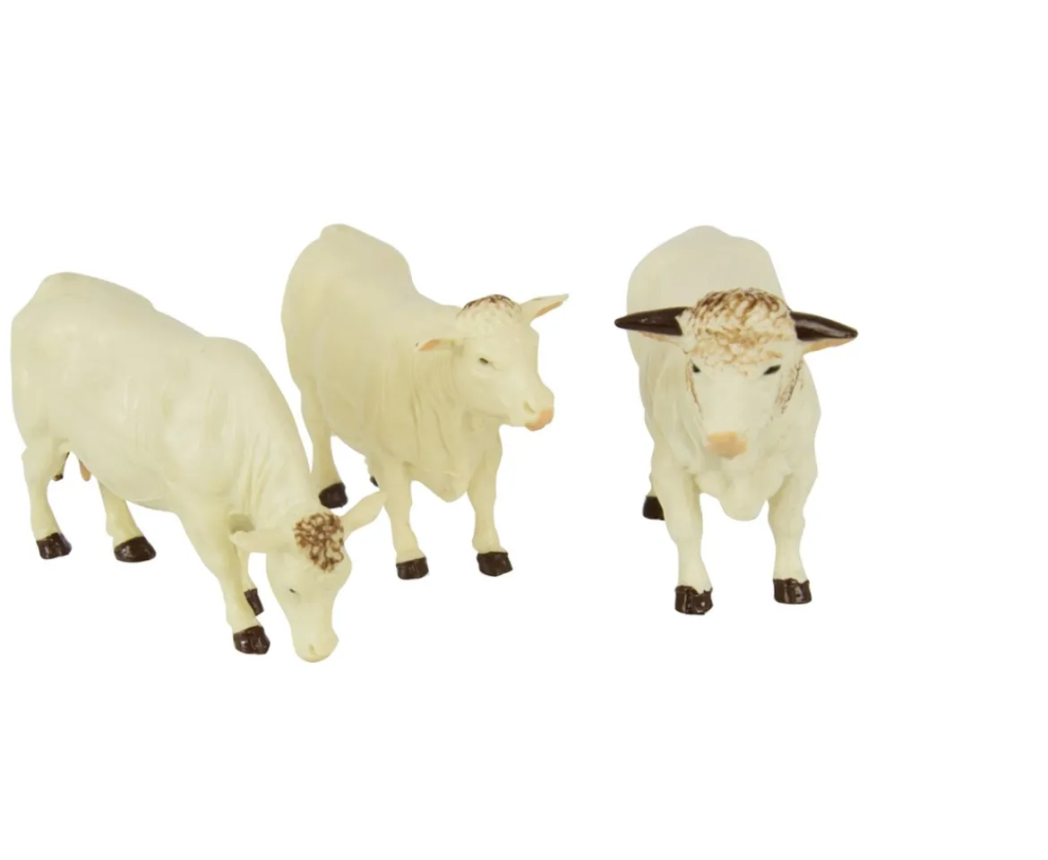 This set of 3 charolais cows, will make a great addition to your Britains farm. Set consists of 3 cows. Place them in the field, in the dairy or load them up in the cattle trailer (sold separately). Compatible with all 1:32 scale authentic replica plastic farm vehicles, and figures. Suitable for novice farmers ages 3 years and up.