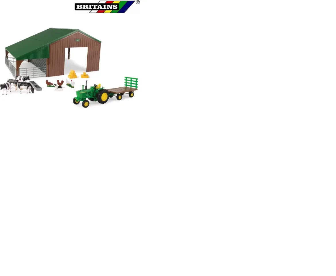 The Everyday Play collection is a perfect introduction for our new younger fans, focusing on great value as well as the great quality from Britains toys. The John Deere Farm Playset includes almos full diecast John Deere 4020 tractor with trailer, a farm building, 4 Fresian cows, 2 pairs of chickens, plus a big pile of bales – the perfect starter kit for any young farmer to recreate your very own countryside scene in your own home. Simply drive your tractor into the farm, and get busy working for lots of farmyard fun! Made from durable precision-moulded plastic. Suitable for indoor and outdoor play, for all boys and girls aged 3+