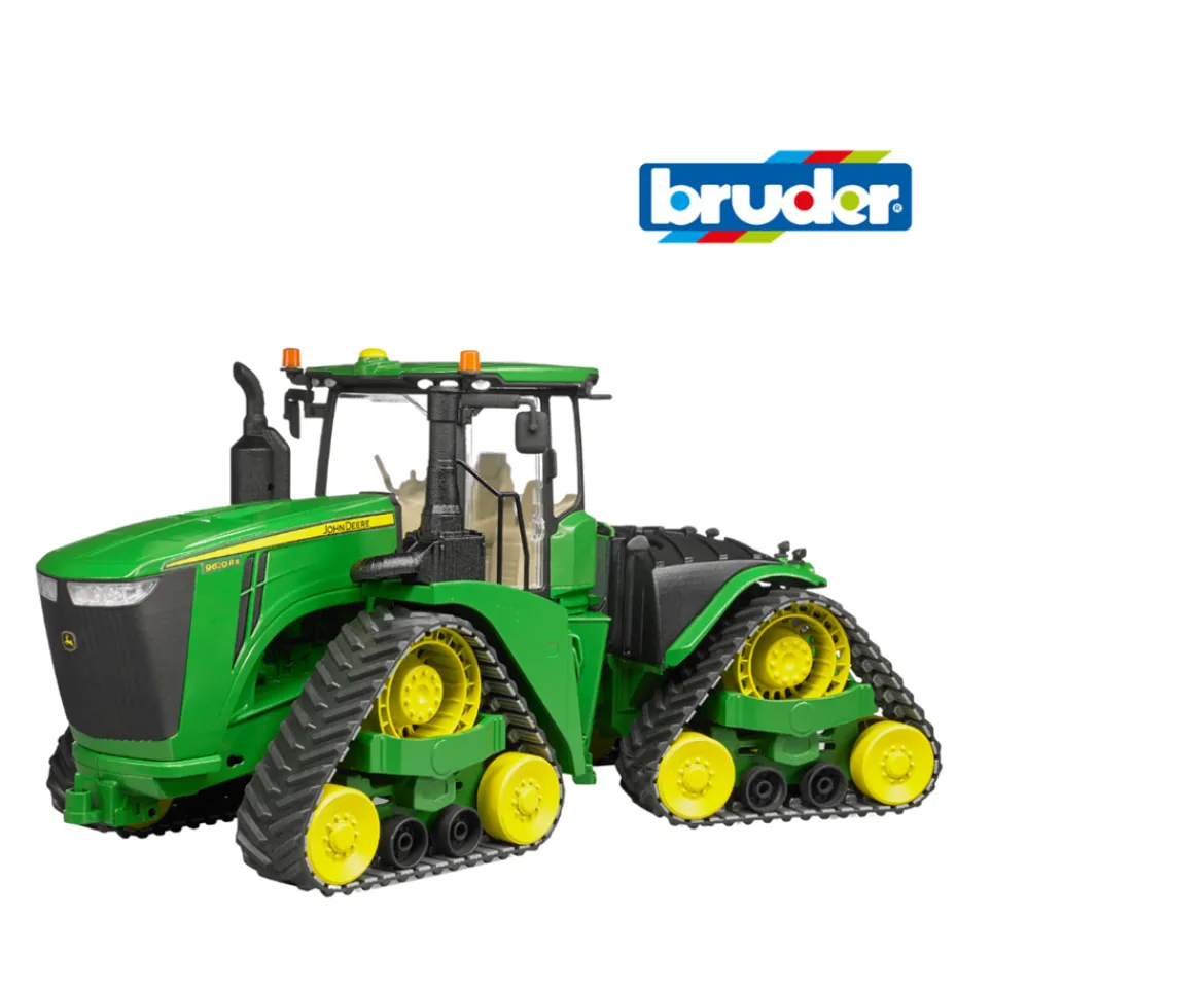 With the 9620RX, John Deere introduces the largest and largest crawler tractor to date. With an engine output of up to 670 hp and its four caterpillar tracks, which give it tremendous traction combined with the best possible soil conservation, it is the perfect partner when it comes to mastering the heaviest towing work with attachments such as a cultivator, plow and sowing combination. This imposing tractor is now in 1:16 scale in a unique detail, new to Bruder in the range. Like the original, the model has 4 newly developed crawler drives, as well as the all-terrain articulated steering. The driver’s cab has a door to open and also the impressive bonnet can be opened and shows the huge engine. The trailer coupling with height-adjustable lifting gear can be used to attach a large number of towing devices from the BRUDER agricultural range.