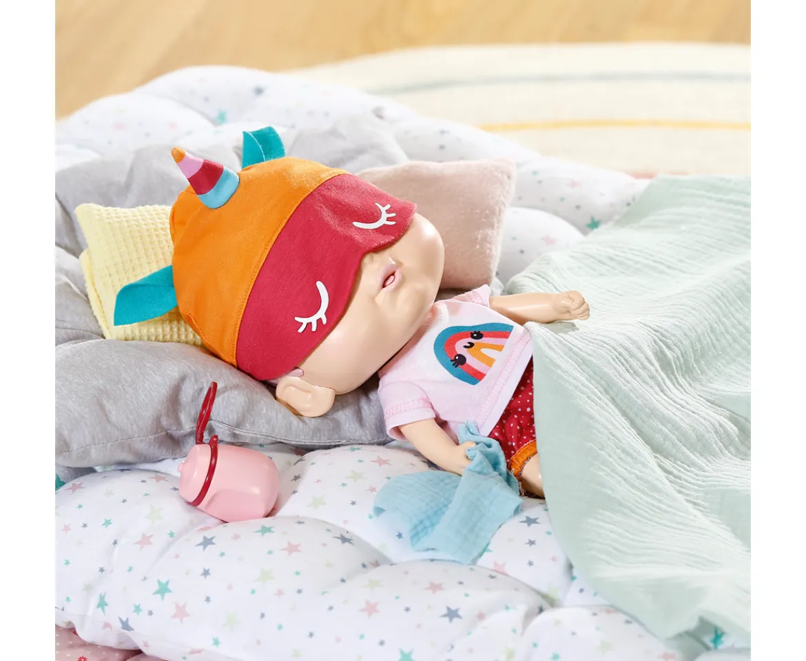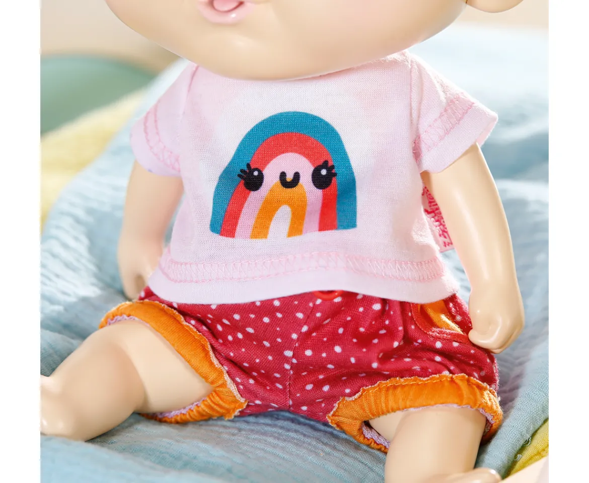 “Cute, cheeky and lots of fun, Chou Chou Baby Robin is the must-have baby doll for your little one! With big, charming eyes that bobble with every movement, dinky nose and mouth, plus bright pink hair, your little one will adore getting to know their new best friend. When Baby Robin is awake this cheeky doll loves to babble and chat the day away. If you bounce Chou Chou up and down it’s none stop giggles! Is Robin thirsty? Little ones can put the bottle to Robin’s mouth and they will hear sucking sounds. It’s the same if they put the dummy to robin’s mouth too! Aw is Baby Robin getting tired? When you rock Robin from side-to-side you will hear cute little yawning sounds – you can even pull the hat over those big eyes as a sleep mask! Chou Chou… Feed them, rock them, bounce them, cuddle them, LOVE them! Chou Chou Baby Robin 30cm doll includes pink t-shirt with rainbow on the front, red shorts with white polka dots, plus a hat with unicorn horn and ears. Also includes dummy, bottle and limited edition romper. With 25+ different sounds! Suitable for children aged 2+. Requires 3 x AAA batteries. ”