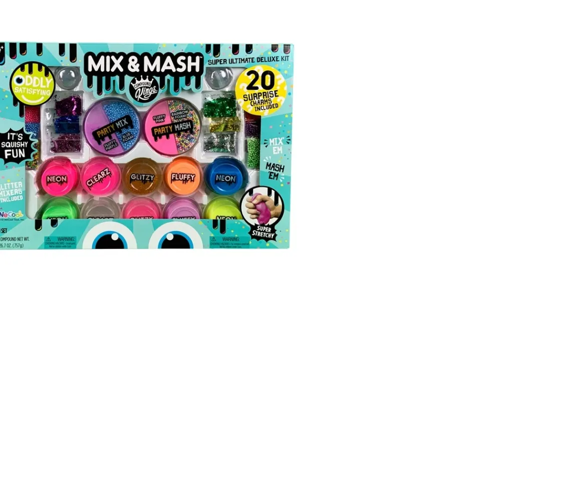 The Super Ultimate Deluxe Kit includes everything kids need to get started mixing and mashing their own slime creation! This kit allows kids to custom make their very own ooey-gooey creation. No glue required since all the compounds are pre-made. Simply mix in your glitters, foam beads, and surprise charms and watch your slime magically transform into your own personal slimey creation! After mixing and mashing, place your slime into one of the pods to share with friends! The only limit is your imagination!