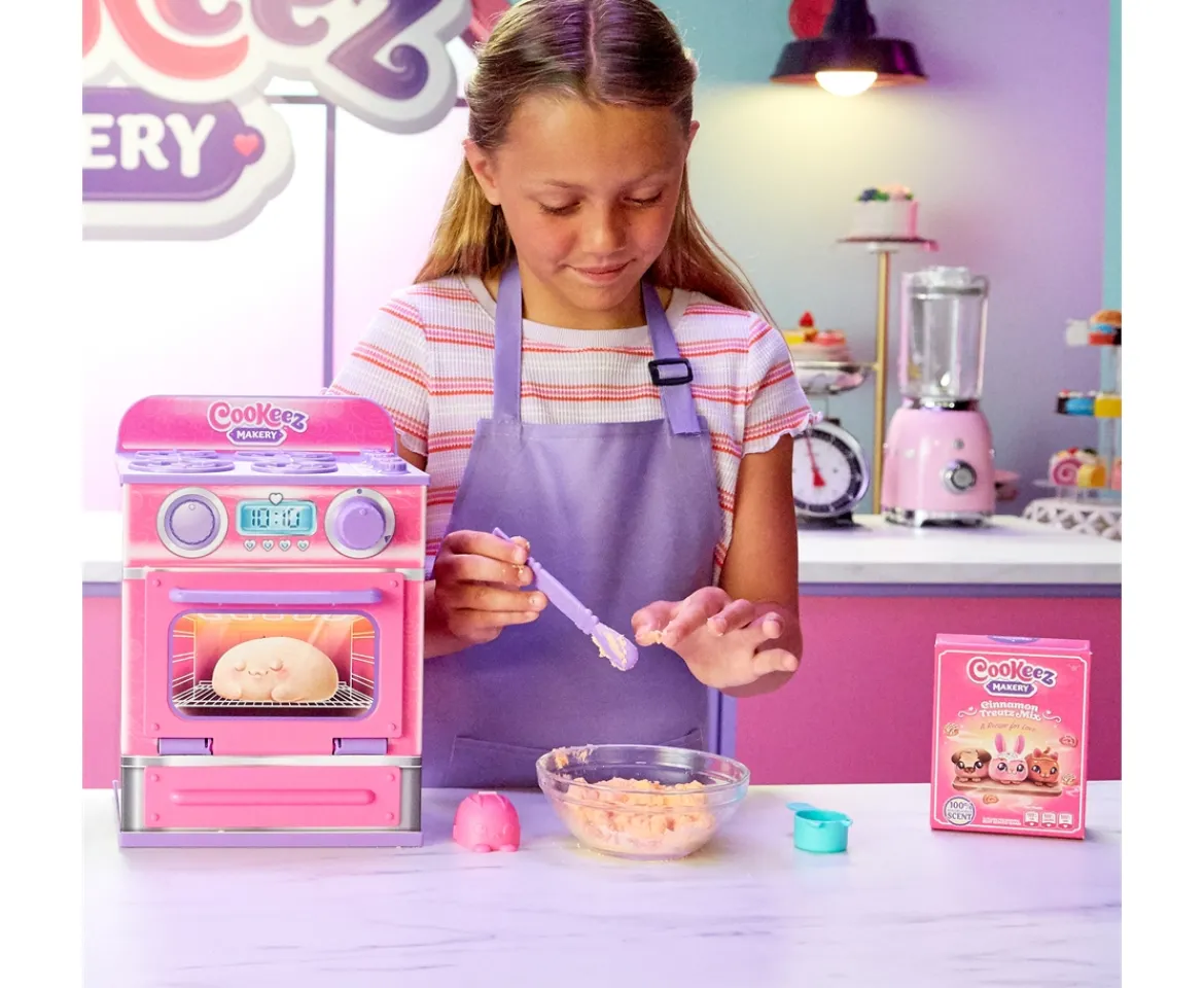 - Amazing Sensory Surprise!The Cookeez Makery Cinnamon Treatz Oven has one of the most amazing surprise reveals of any toy! When your child opens up the oven door after its timer goes off, not only do they see an adorable plush, but they will also feel its warmth as they hold it and smell its delicious cinnamon scent – just like a freshly baked treat!