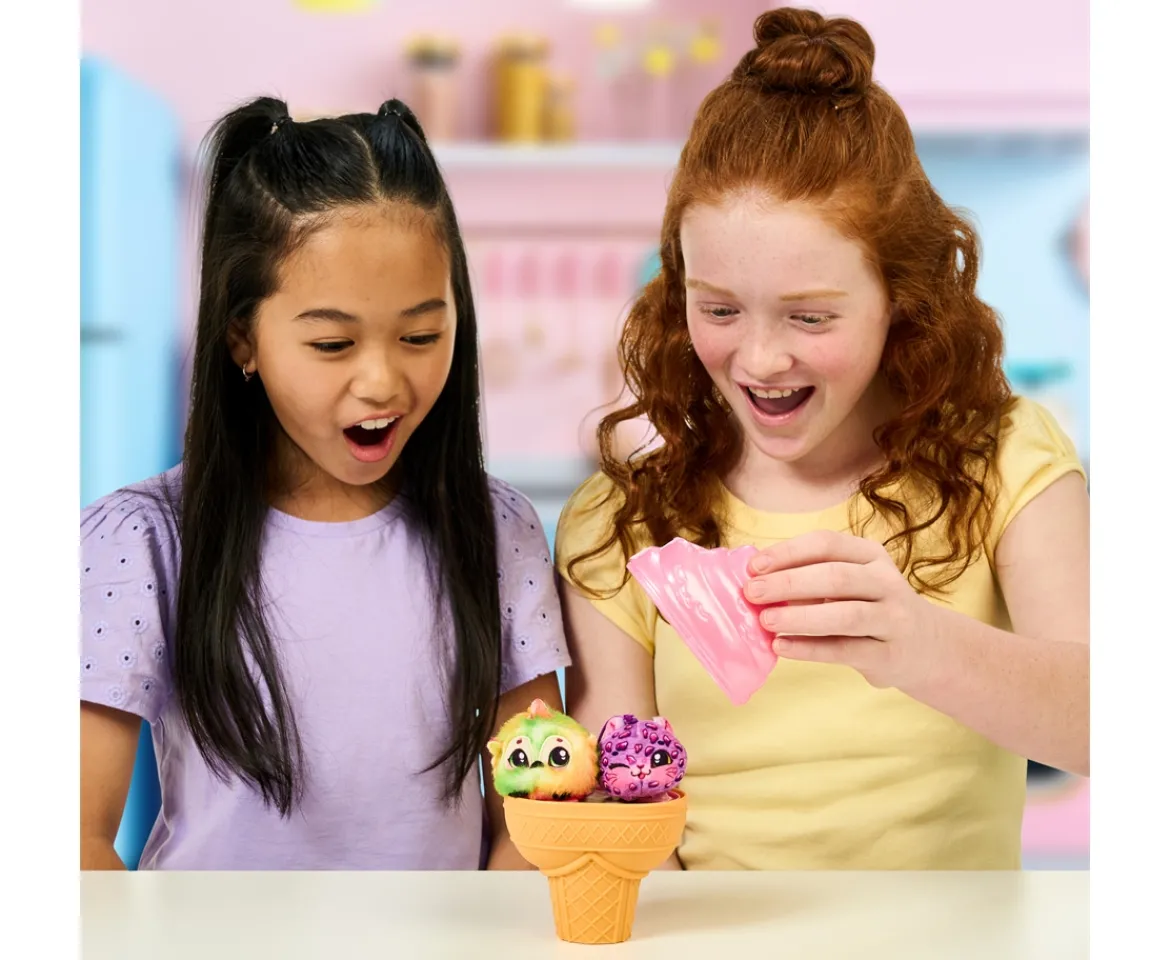 Cookeez Makery Yum Yumz are full of fun and full of YUM and Yum Yumz Twin Packs are twice the fun with 2 super-cute surprises inside your ice cream cone to reveal! These joy-filled ice cream cones are loaded with the sweetest surprises! Now you can add ingredients to create 2 deliciously scented plush pets! The fun starts when your child pops off the top of their toy ice cream, to discover 2 ingredients and a toy cherry. Get mixing and watch the magic! Add the ingredients to the ice cream, place the ice cream lid back on, then push in and turn the special cherry key. It’s time for “Lift-off”! Wow! 2 Super-cute Scented Surprise plush pets! Who will be scoop out? Discover 2 of the sweetest plush pets that you could ever get in the shape of a yummy smelling ice cream treat. The Cookeez Makery Yum Yumz Twin Pack also includes a cute sticker sheet so that kids can style up their ice cream cone with colored sprinkles! There are so many delicious scented ice cream pets for kids to meet. In fact there are over 30 adorable plush ice cream besties, with Common, Rare and Ultra Rare Yum Yumz to collect. Which d’lish smelling plushie will they find? Fun, sweet and fun to meet, there are all sorts of animals, birds and even sea creatures in these cones of cuteness! Maybe they will even find the Limited Edition Lotta Berry Axolotl. Discover which cute little Yum Yumz have made their home in an ice cream cone. Scoop up the fun and collect every one! Cookeez Makery Yum Yumz, the Partylicious Pets that’ll melt your heart!