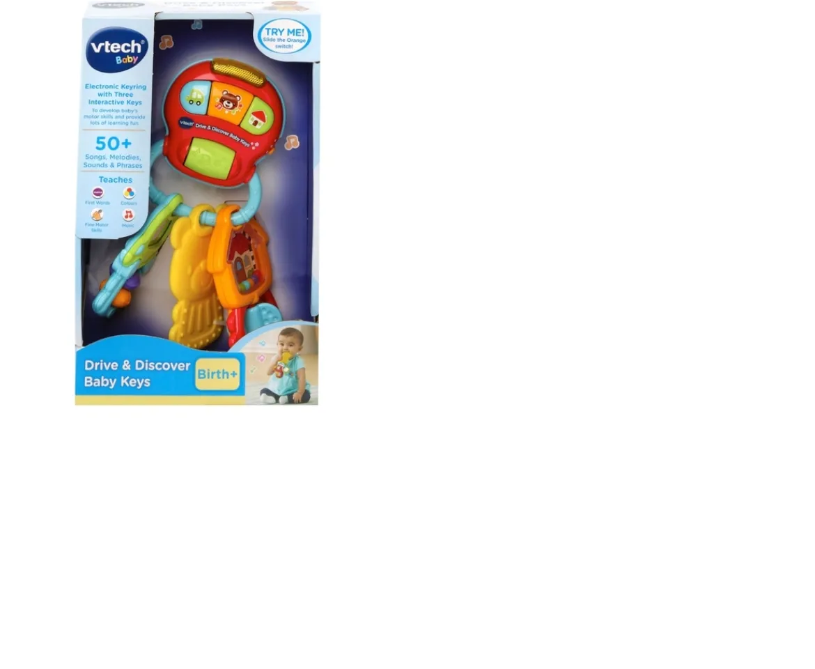 - Shake, rattle and go with the Drive & Discover Baby Keys by VTech.