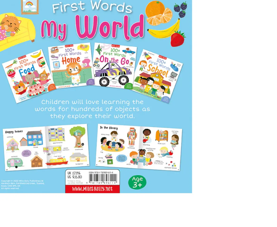 Young children will love exploring their world with this helpful 4-pack set of first word books! Each book explores familiar places and situations, and provides little ones with 100+words alongside brightly illustrated objects and simple scenes. With lots to talk about on every page, inquisitive toddlers will adore learning new words as they explore the world around them. Fun questions are scattered around the pages to encourage inquisitive toddlers to interact with the book. There are also fun ‘Can you find?’ activities with prompts to find objects within the book. Each title is playfully illustrated by a talented children’s illustrator. First word books are invaluable for toddlers as they learn to talk – and are brilliant for sharing time and time again!