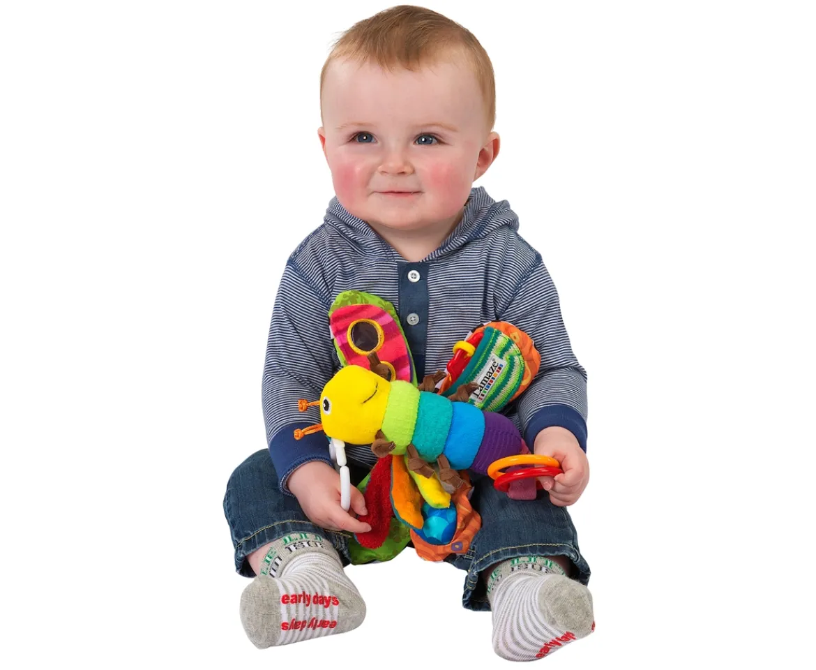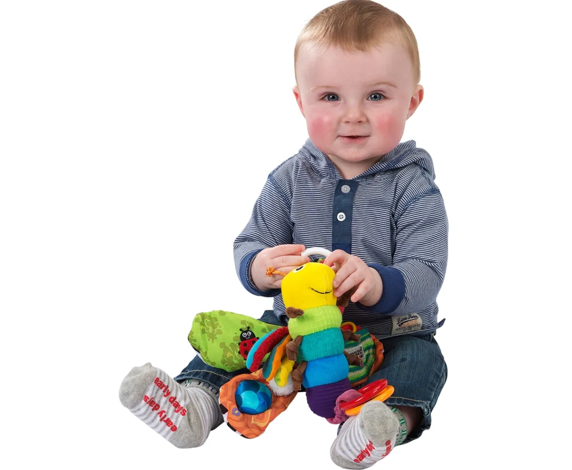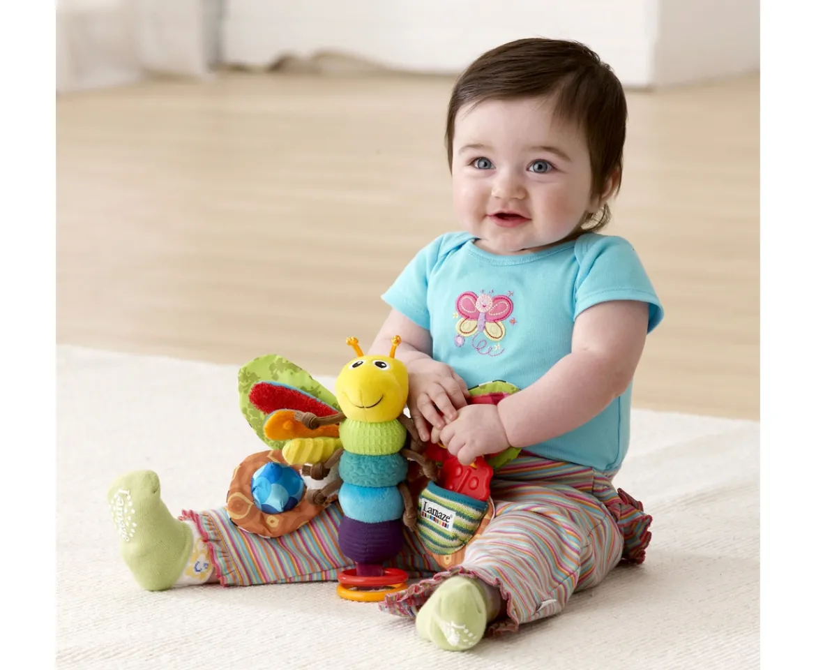- Soft velour body and multiple textures on the wings keep baby engaged