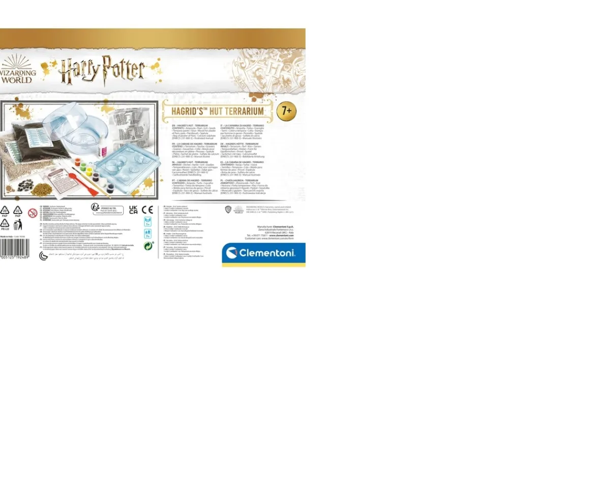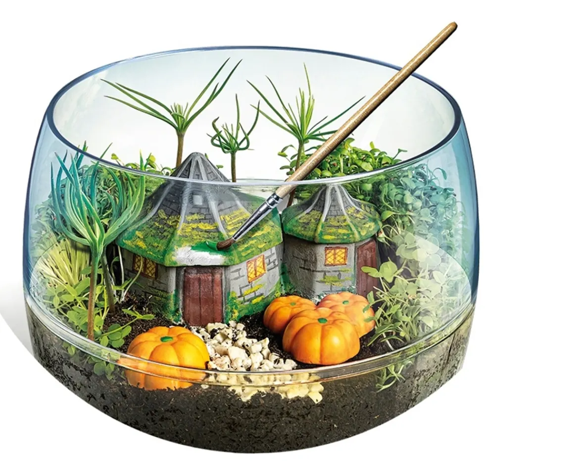 A fantastic kit for creating a personal miniature ecosystem with a truly magical setting, in perfect Harry Potter style! A game that let’s children have fun while they learn the importance of taking care of their plants. Contains plaster of Paris, moulds and tempera colours for creating Hagrid’s fantastic hut with its typical pumpkins. Children can have fun using the seeds, peat, soil, sand and stones to grow a natural landscape filled with plants around Hogwarts.