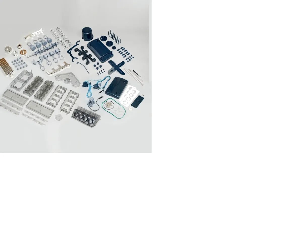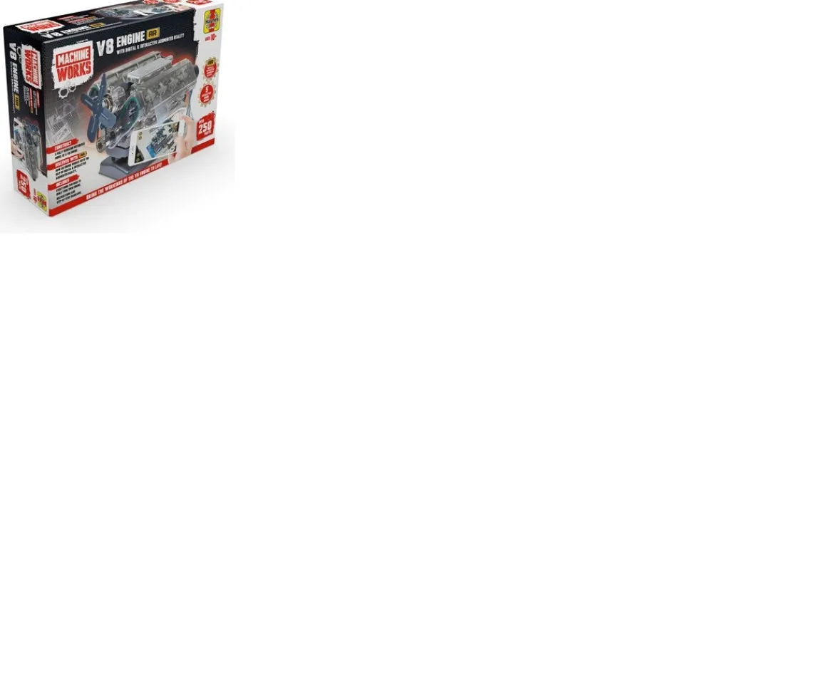 Build a fully functional, motorised model of a V8 petrol engine. This model is a greatly simplified version of a real V8 car engine featuring realistic V8 sound and illuminating spark plugs.Everything You Need to BuildThis model V8 engine set contains over 250 pieces – and everything that you need to assemble the model. This model kit for adults comes with a manual, giving you step-by-step instructions as well as interesting information about V8 engines.Pair with the AppTo help you discover how internal combustion engines work, use the special augmented reality app – available via your smart phone. This creates an interactive experience with the finished model V8 engine. You can see an exploded view of the engine with 5 animations of key components and detailed descriptions of 11 different engine parts plus the engine sound.