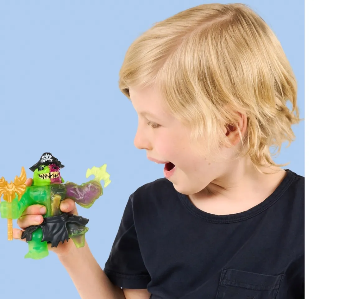 Rock Jaw from the Heroes of Goo Jit Zu has been cursed – submerge thefigure in ice-cold water and watch his face transform! Kids can stretch up to three times his size anddiscover water beads lying under the surface!Squish, squeeze, and stretch to their limit! Will you find all fiveHeroes of Goo Jit Zu Cursed Goo Sea figures? (Each sold separately).Add to your collection today!