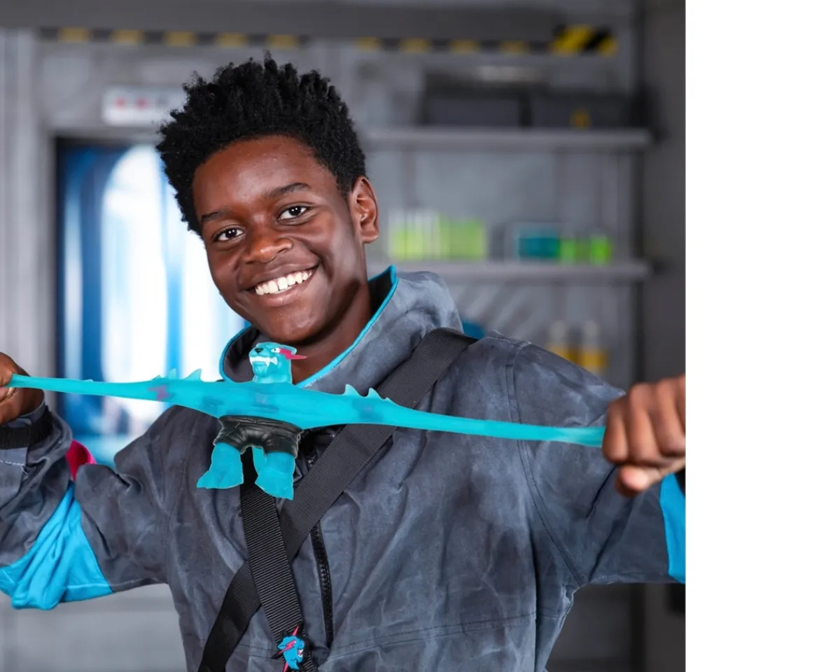 Let the adventures begin with the Heroes of Goo Jit Zu MrBeast Lab Stretchy Hero Hypercharged Panther Figure! This figure has a fun filling inside awaiting discovery – a unique pink lightning bolt filling. Stretch and squish this figure to uncover the lightning bolts hidden inside. That’s not all, it also possesses the epic ability to stretch up to three times its size, so get ready to unleash an almighty attack!