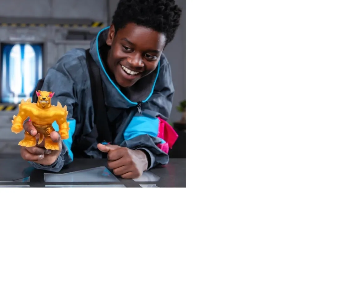 Let the adventures begin with the Heroes of Goo Jit Zu MrBeast Lab Stretchy Hero Legendary Panther Figure! This figure has a fun filling inside awaiting discovery – a unique golden goo filling. Stretch and squish this figure to uncover it. That’s not all, it also possesses the epic ability to stretch up to three times its size, so get ready to unleash an almighty attack!