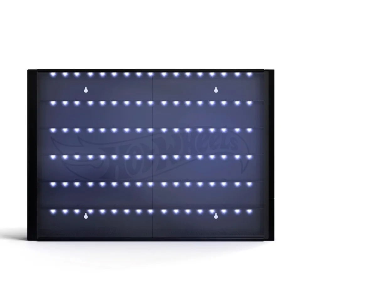 Conveniently store and carry all your Hot Wheels cars in this super cool Hot Wheels 6-Level Display Case! This case is ideal for shielding your cars against being knocked or damaged. Mount the case to a wall to save space on your desk, table or shelf. Then, sit back and admire your amazing collection! The Hot Wheels 6-Level Display Case also lights up with LED light stripes on each level.