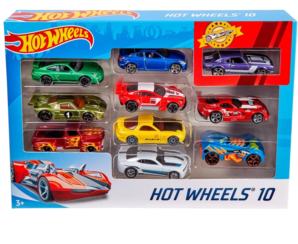 Since their debut in 1968, Hot Wheels® vehicles have been an enduring favorite of collectors, car enthusiasts and racing fans of all ages. The 10-Pack assortment includes a variety of vehicles. Each car is featured at 1:64 scale with realistic details and authentic decos. Makes a great gift for kids and collectors of all ages.