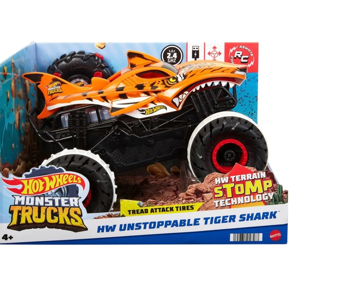 - Contents: 1 x Hot Wheels Monster Trucks Remote Control Unstoppable Tiger Shark