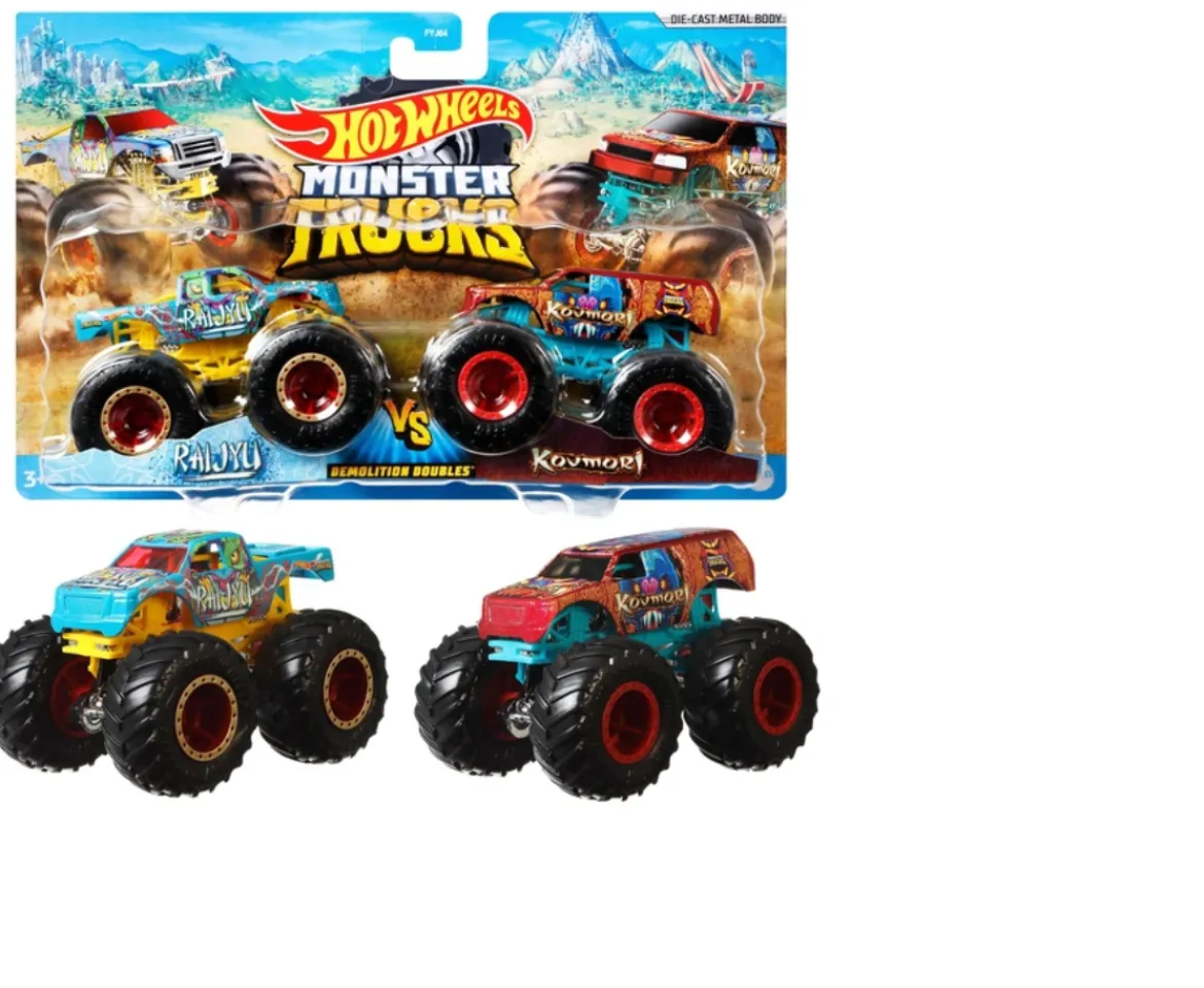 Double the fun with the Hot Wheels Monster Trucks 1:64 2 Pack. Each toy truck has its own epic design. What they all have in common are giant wheels and an oversized body.Hot Wheels Monster Trucks 1:64 scale die-cast trucks are built for head-to-head competition. Each one has detailed styling and massive wheels with wicked tyre treads. Hot Wheels Monster Truck toys are built to smash and crash everything in sight, crushing any car in the way!
