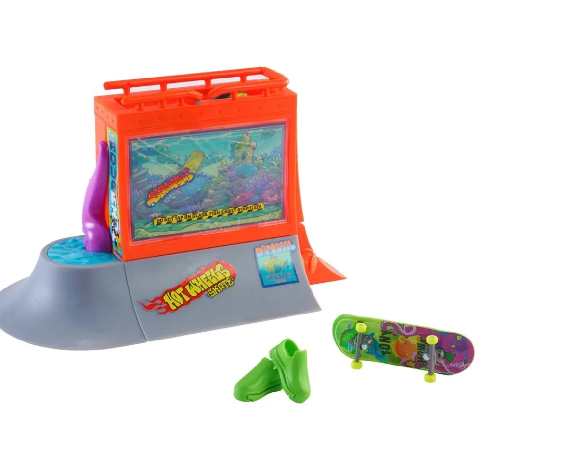 - Contents: 1x Hot Wheels Skate Aquarium Skatepark set, 1x finger-sized skateboard & 1x pair of finger-sized shoes