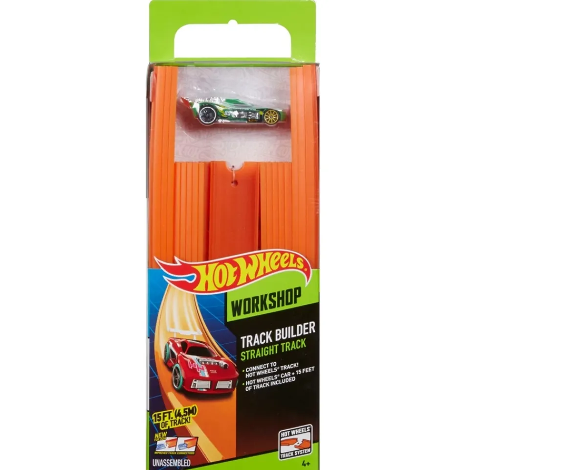 See what speeds you can accomplish with the Hot Wheels Track Builder Straight Track with Car. With a whopping 15 feet of track, it’s Hot Wheels custom action like never seen before! One Hot Wheels car is included so the revved up fun starts immediately. Send your Hot Wheels car blasting along the track and speeding through the straightaways. Or test the speed of other cars in your collection to see which one has what it takes to win the race.