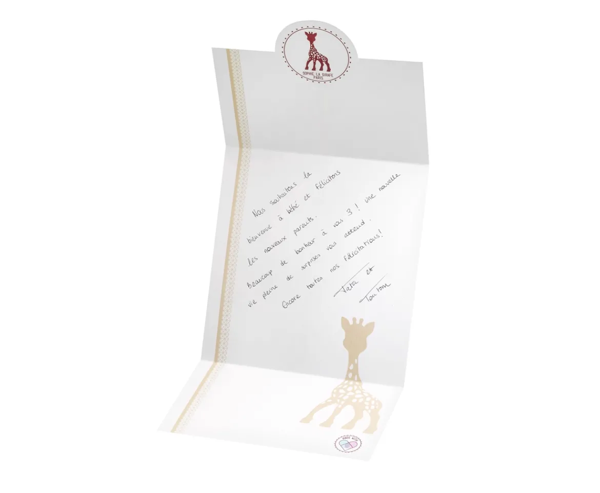 - Packaged in a premium gift box to give a contemporary, modern and sophisticated look. Each set comes with its own Sophie la girafe branded gift bag and a gift card, for including your own special message. This really is the complete first gift set!