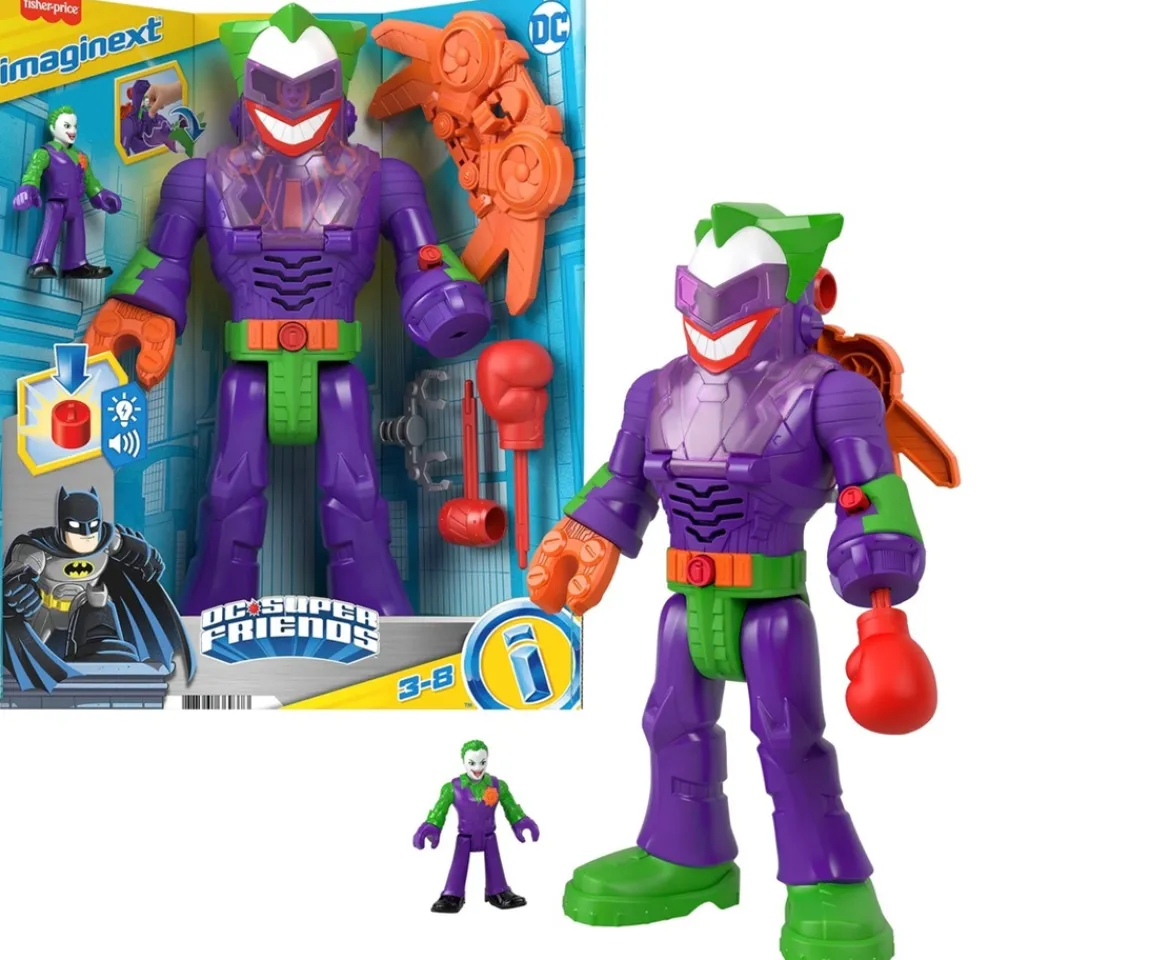 The Imaginext DC Super Friends Batman Insider & Exo Suit robot figure set lets kids take their imaginitive Super Hero stories to the next level. With Super-Villains on the loose, Batman pulls out his biggest gadget: the Exo Suit. Kids can place the poseable figure inside the robot cockpit and send the dynamic duo to save the day!Featuring cool lights and sounds, plus 4 battle accessories, this preschool-friendly robot figure set is packed with imaginative storytelling play. (Additional figures sold separately and subject to availability.)