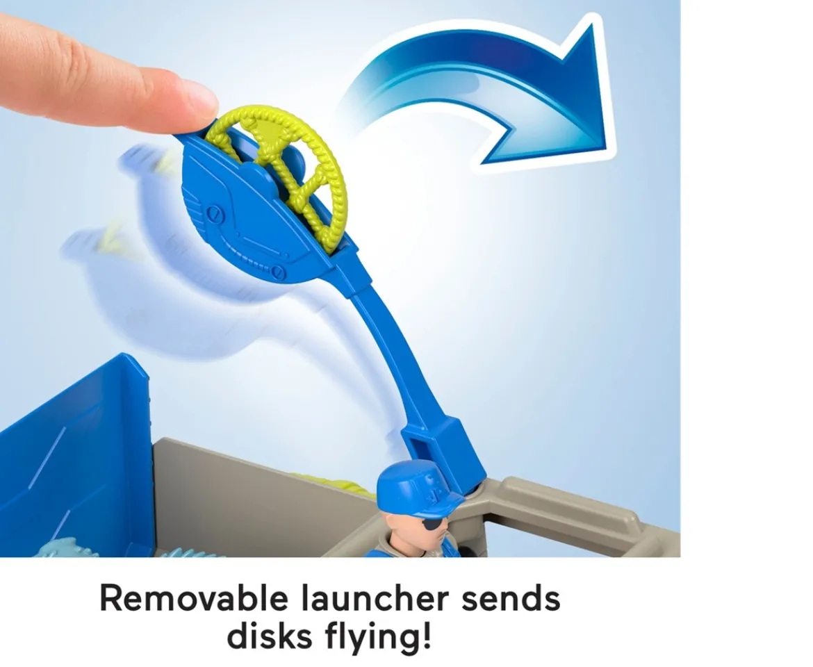 - Truck features a fold-down ramp for loading & unloading, plus a manual disk launcher!