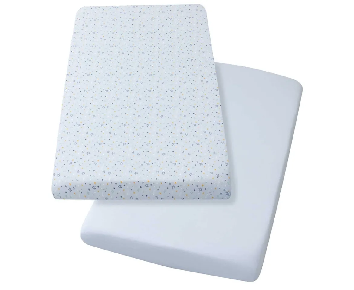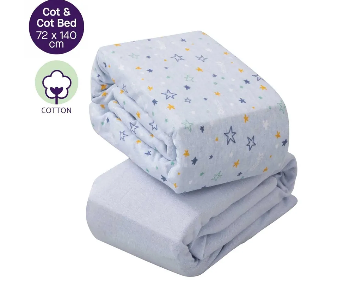 Designed to fit ClevaMama® mattresses, our cot and cot bed fitted sheets have an extra deep skirt to stretch and fit perfectly to any standard size mattress for cots and cot beds.Made from beautifully soft jersey cotton, these elastic sheets come in a range of colours to suit any nursery and the twin pack means you always have one ready for a quick change.Our fresh cotton sheets are machine washable (40°) and tumble dryer safe and do not need to be ironed. Like all our ClevaMama products, quality is at the heart of every product we make and these sheets are no different. They are designed to help your little one be more comfortable in any season, helping to ensure everyone gets a peaceful and restful night’s sleep.The fitted sheets for cot/cot bed measures 72 x 140 x 17 cm with 360° elastic for safe, secure fitting.Our Cotton Fitted sheets are also available in other sizes.