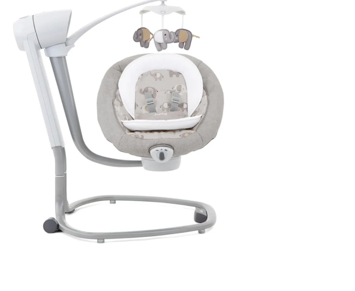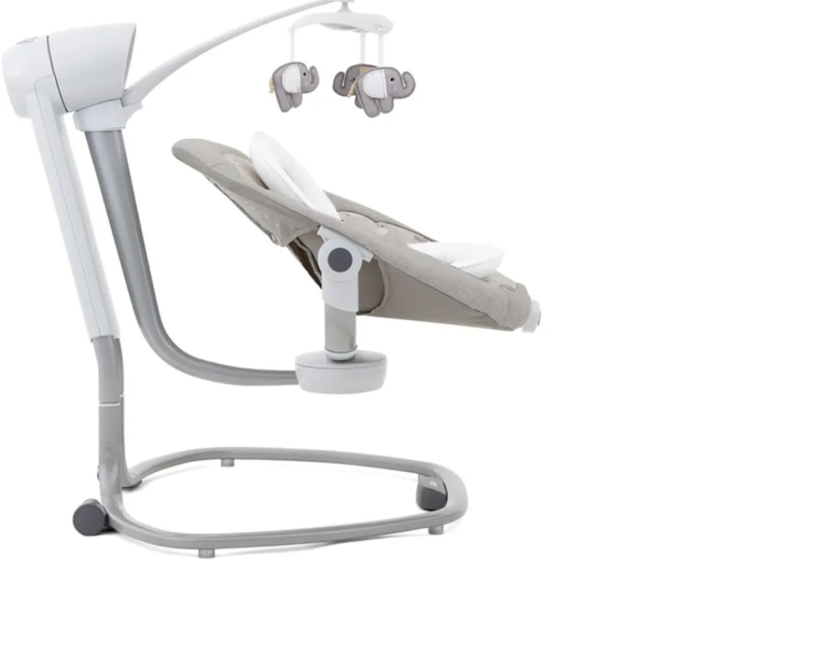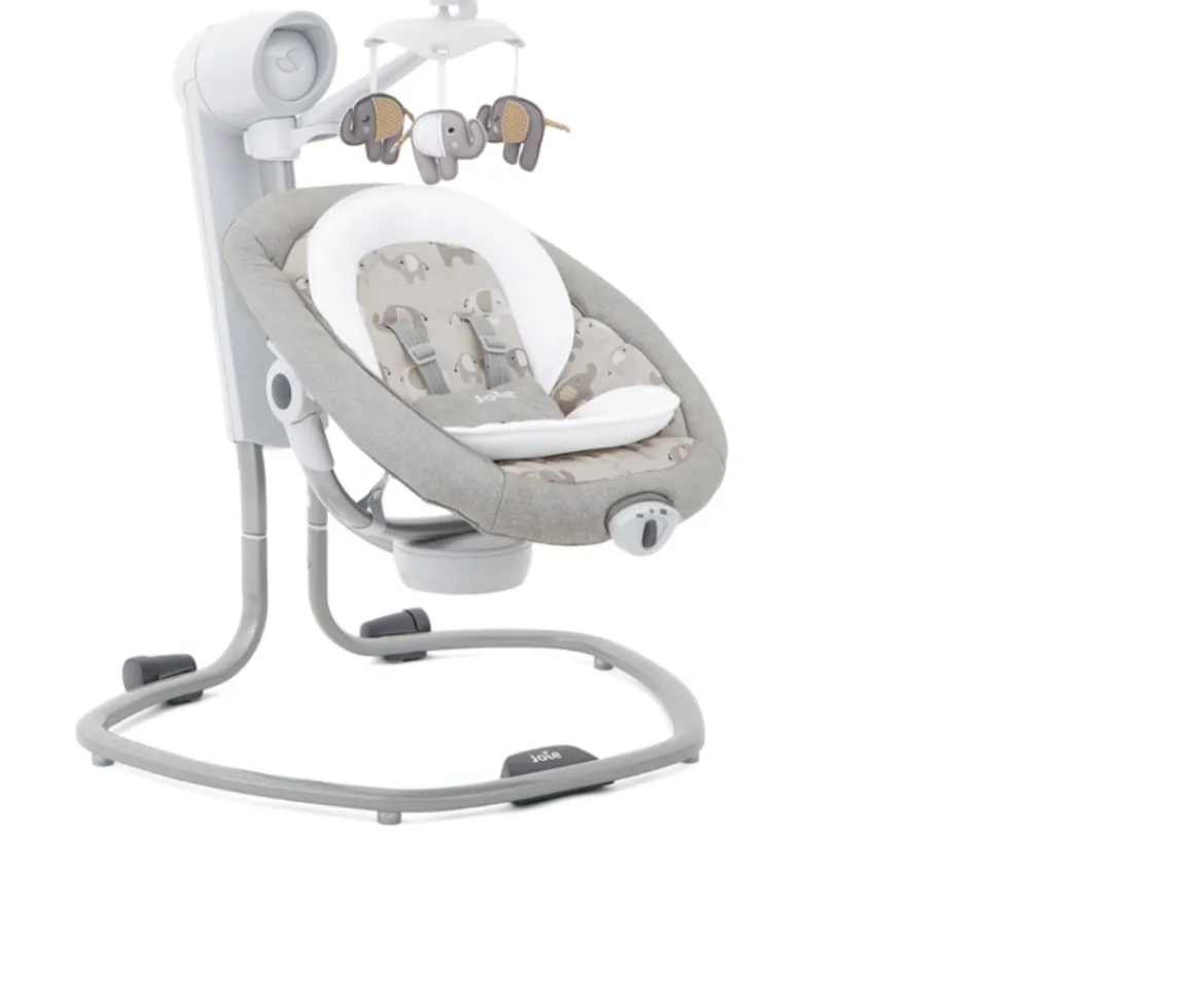 The Joie Serina Baby Swing helps you find the perfect motion to soothe your baby. This versatile baby rocker swings forwards, backwards and from side to side with six speed settings and two optional calming vibrations. You’re sure to find a combination that’s just right for soothing your little one to sleep.Lights, Music, Play!Play five classic lullabies and five nature sounds to lull baby to sleep in this soothing baby seat. The Joie Serina Baby Swing also comes with a nightlight, to create the perfect glow for snoozing. Once nap time becomes play time, you can pivot the baby rocker’s overhead toy bar to give your little one access to three hanging plush toys.Compact & PortableThe Joie Serina Swing has two wheels and an integrated carry handle, so you can roll the baby rocker between rooms with ease. The compact frame makes this baby swing suitable even for smaller rooms.